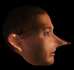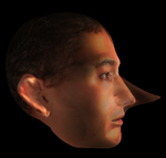 We used a multi-flash camera for image acquisition. Differently from [1], we used a large camera-flash baseline in our setup, which allows us to detect not only depth edges in the face, but also important details such as hair, wrinkles, beard, etc. We obtained images from both frontal and profile views of a person and created a 3D model of the person. |