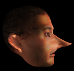 Human faces have small-scale bumpy features that are too fine to represent with highly tessellated geometry. We used bump mapping with our NPR output as a height field to (1) create fine-detail 3D models automatically and (2) create non-photorealistic rendering illustrations.