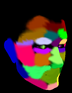 This method uses a separate texture map where facial areas have been grouped through unique colors. Our preprocessing step creates a hash table with vertex groups based on color. Upon selection of a vertex, it can quickly look up the group and obtain the associated vertices. This method works very well and is the one we use in our current version of the system. This method does not require the vertices to be adjacent, which provides greater flexibility in grouping. The drawback is of course that the map has to be created beforehand (currently manually, while the process could be automated) and selection at group borders.